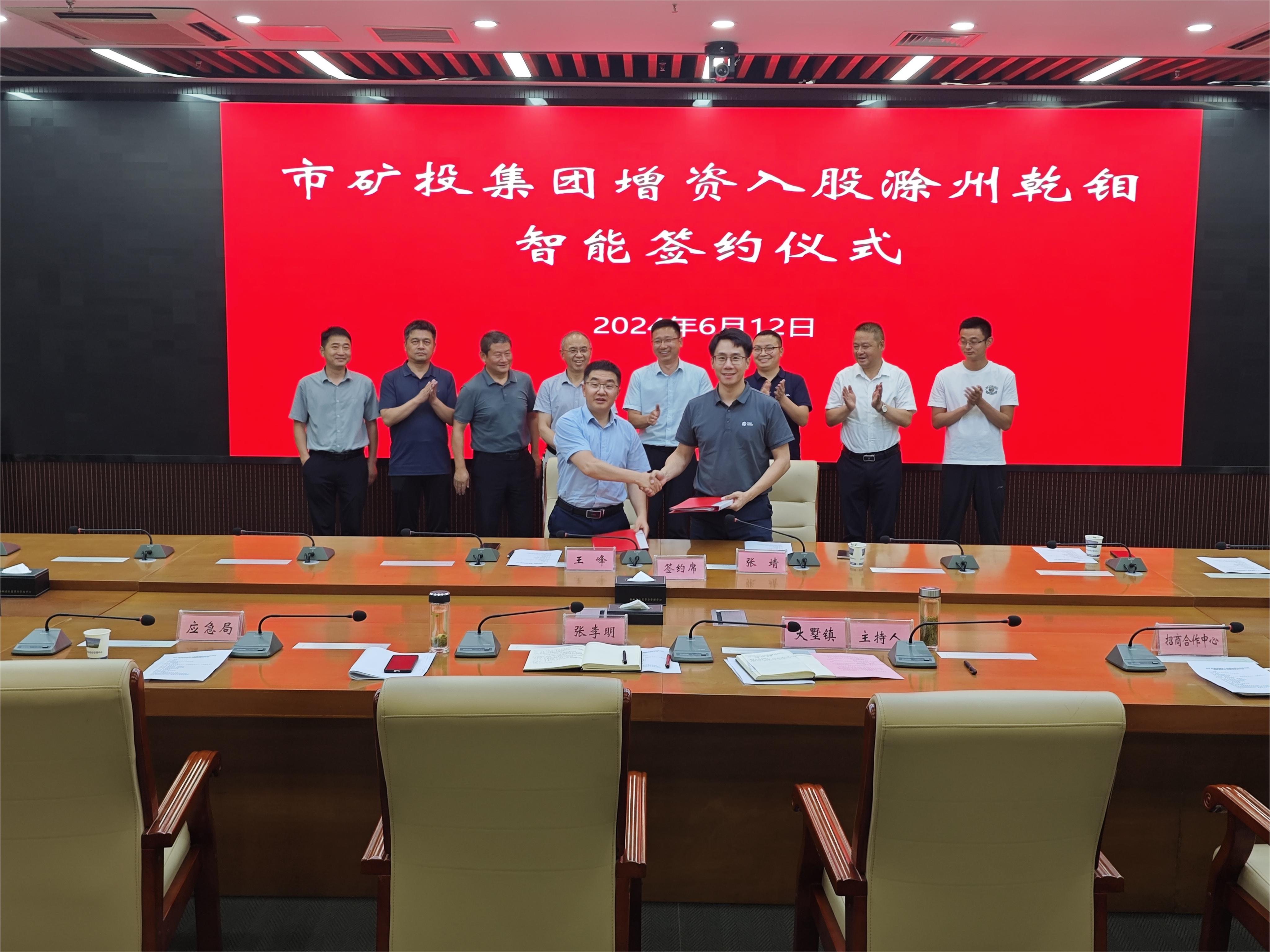 6月12日下午,市礦投集團(tuán)增資入股滁州乾鉬智能制造有限責(zé)任公司簽約儀式在全椒縣政府舉行。市礦投集團(tuán)黨委書記、董事長王峰,黨委委員、紀(jì)檢組長芮金保,全椒縣副縣長張李明出席儀式并講話,全椒縣應(yīng)急局、縣企業(yè)服務(wù)中心、縣招商合作中心、大墅鎮(zhèn)等主要負(fù)責(zé)同志參加本次簽約儀式。